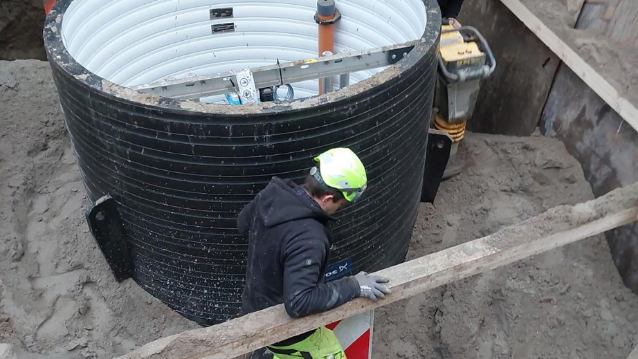 Hos JHH Entreprenør etablerer vi bassinanlæg, der effektivt opsamler og forsinker store vandmængder – til gavn for både bygherre, omgivelser og miljø.