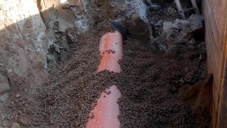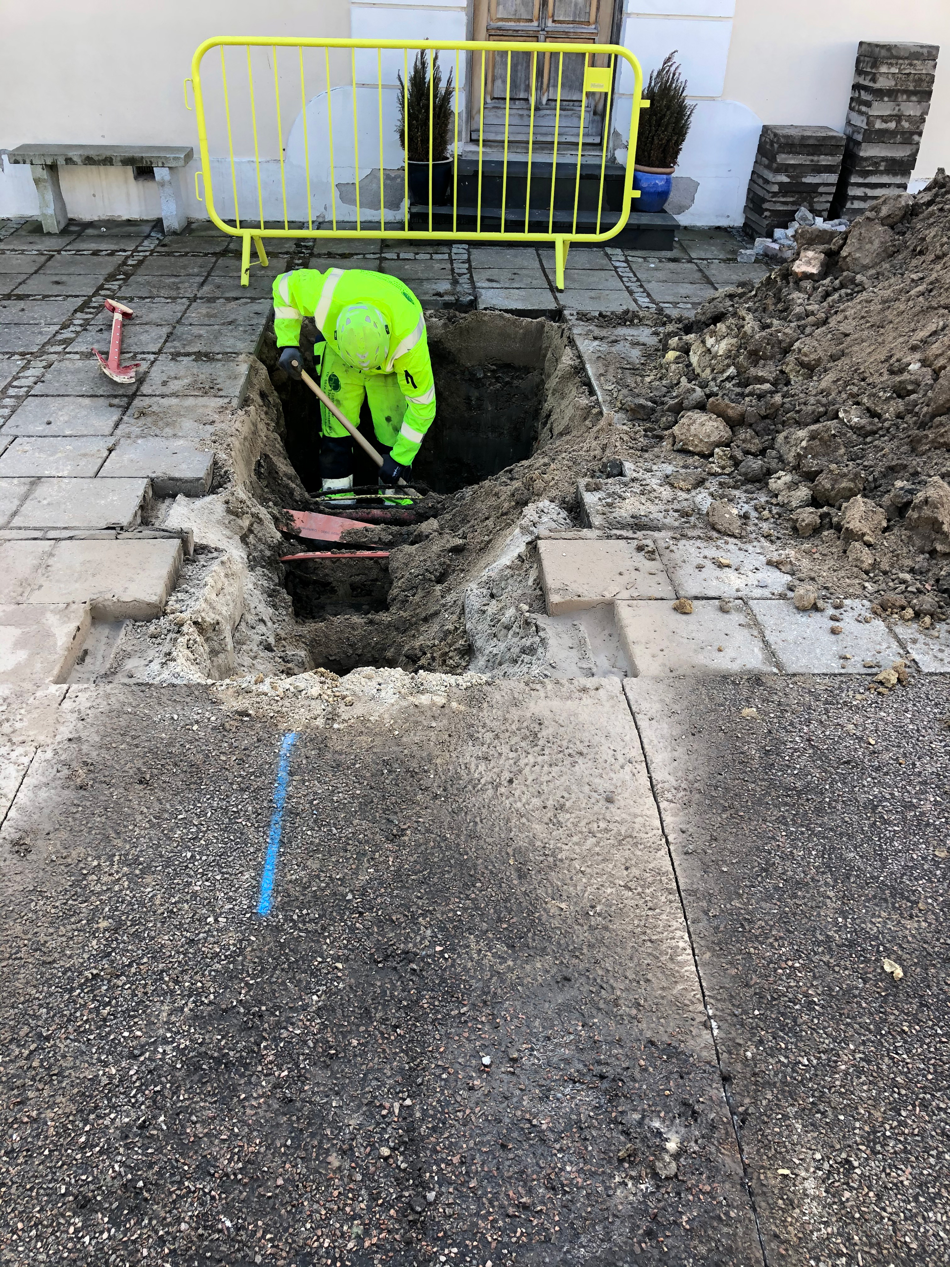 Rydningsarbejder, inkl. fjernelse af belægninger og betonkanaler omkring gamle forsyningsledninger.