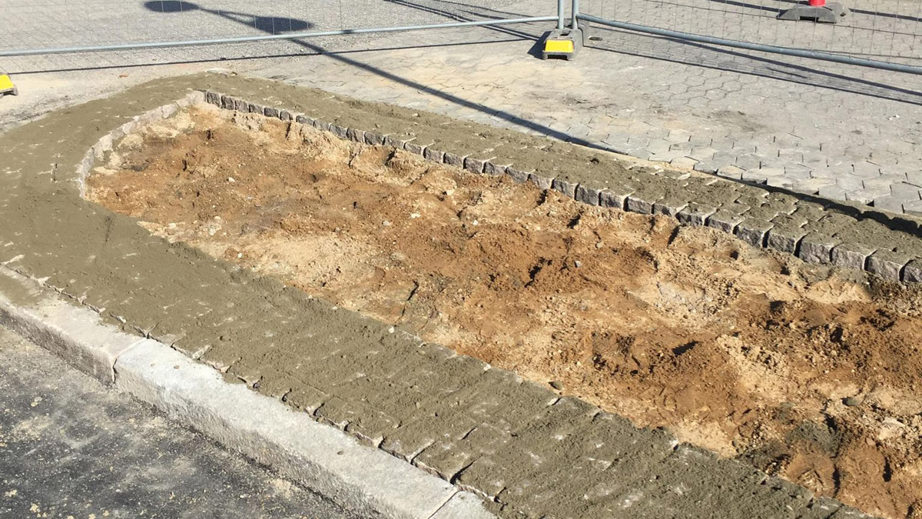 Projektet omfattede en komplet opbygning af ny bund, afvanding, dræn, befæstelser samt den endelige etablering af ny belægning og en imponerende opbygning af terræntrapper.