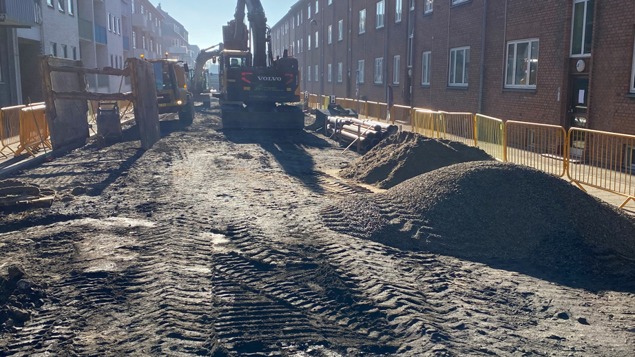 Projektet blev udført i tæt bebygget boligområde med stor fokus på miljøforhold, trafikhåndtering og beboerkoordinering.
